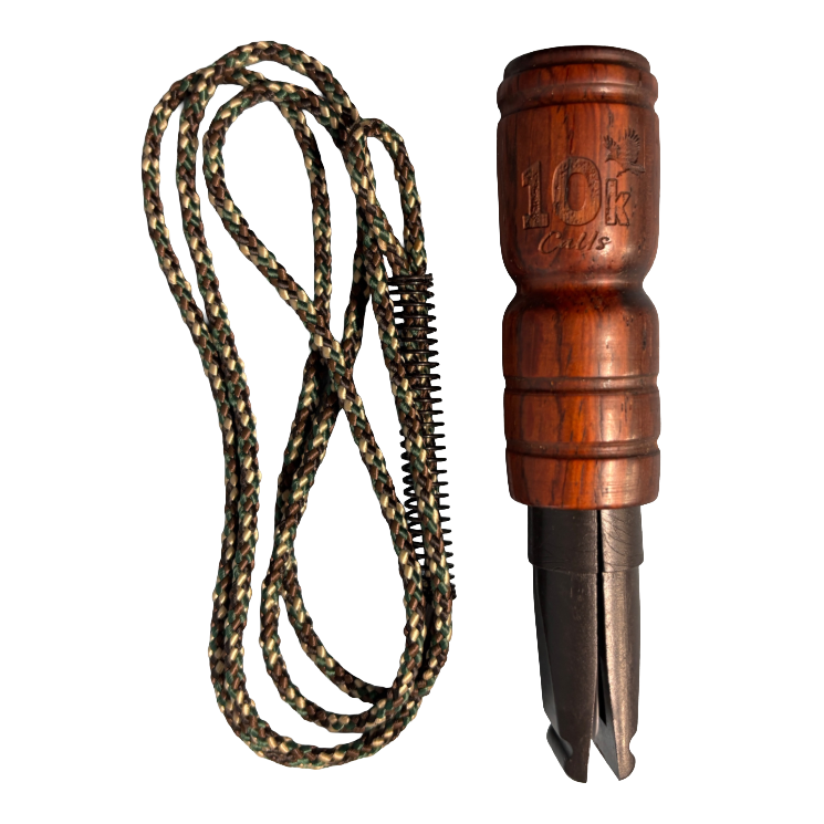 Handcrafted from premium hardwood, this crow call is designed for serious turkey hunters who demand performance and style. The dense hardwood produces a crisp, sharp tone that carries long distances — ideal for triggering shock gobbles from elusive toms. Each call is hand-tuned for a natural, realistic crow sound and features the rich grain and deep color that hardwoods are known for. Whether you're locating roosted birds at daybreak or striking midday responses, this durable, high-quality call will quickly become an essential part of your turkey hunting gear.